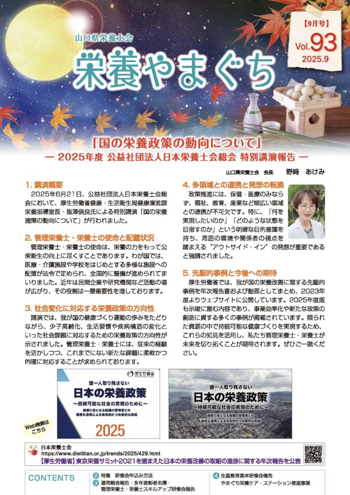 栄養やまぐち2025年9月号Vol.93発行のお知らせ