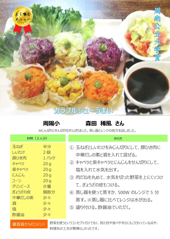 周南市で開催された 「野菜メニューコンクール」受賞作品集 を掲載しました。