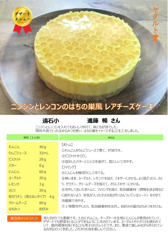 - ニンジンとレンコンのはちの巣風 レアチーズケーキ