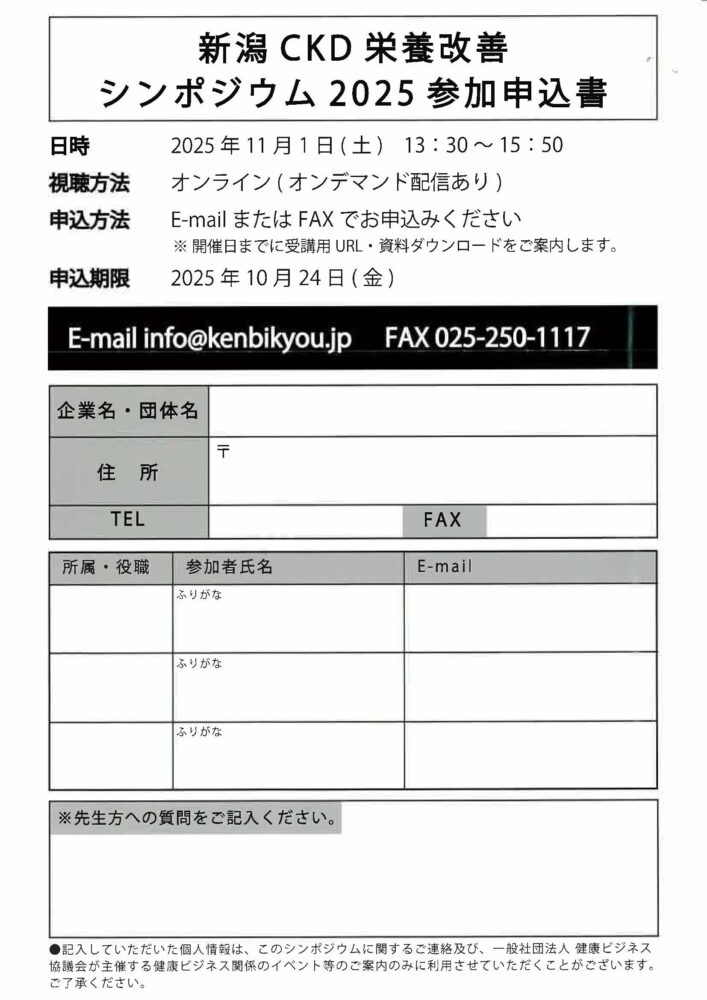 「新潟CKD栄養改善シンポジウム2025」開催のご案内